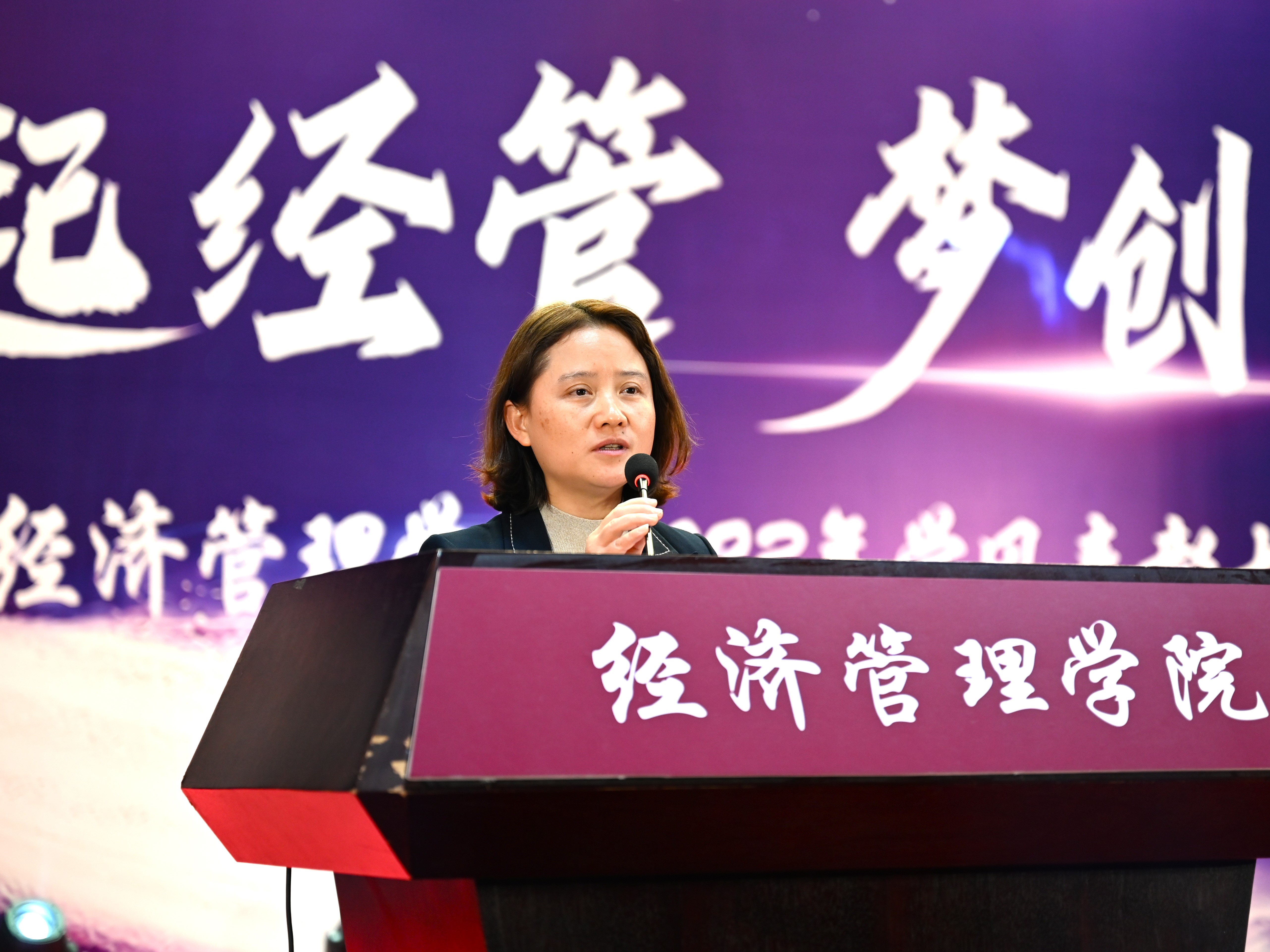 为加强学风建设,总结经验,展现学子风采,激励学院广大师生保持昂扬向上的奋斗姿态,12月14日晚,经管学院在图书信息楼报告厅举办“缘起经管 梦创未来”2023年学风表彰大会。校学生工作部部长孙宗瑞,学院领导班子全体成员,各系主任、班导师、辅导员,22级、23级全体学生参加了活动。