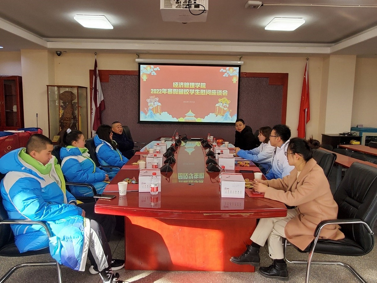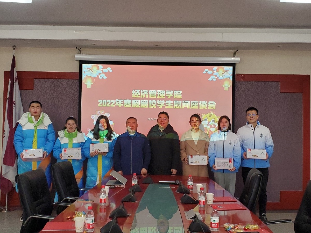 1月31日上午,在除夕之日taptap点点官网在励学楼201会议室举行2022年寒假留校学生慰问活动,学院院长赵继新、党委书记王伟宾、党委副书记赵洁及留校学生参加了慰问活动。