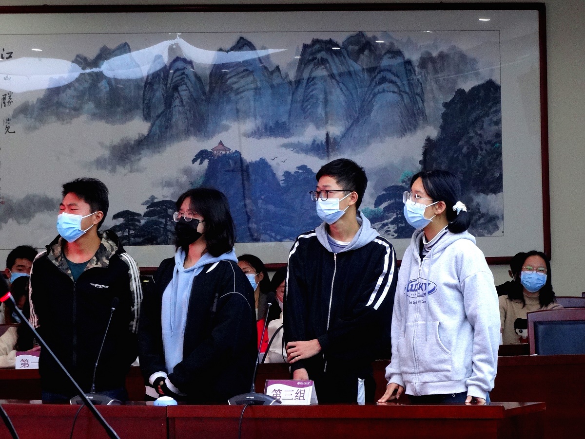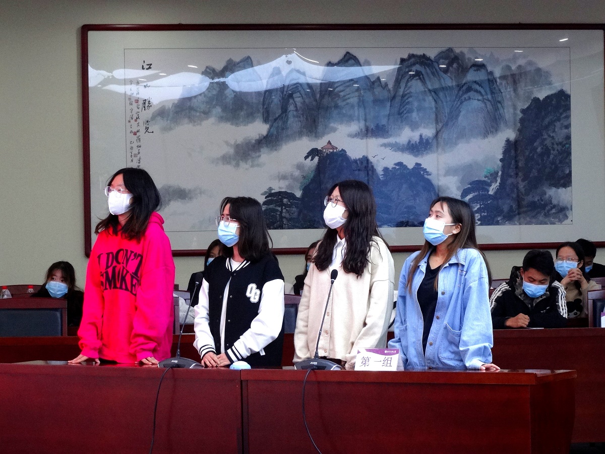 决赛分为必答环节和抢答环节。32位参赛选手自由组合分为8组,基础分100分,每组随机回答10道题。经过第一轮环节,各组选手都表现出了良好的精神面貌,得分差距较小。第二轮为抢答环节,两组选手进行抢答,极大地考验了同学们的应变能力。