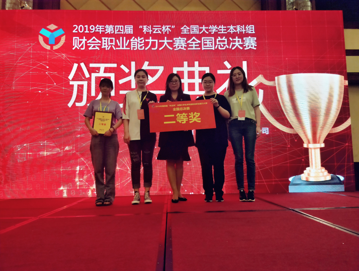 2019年11月22日至11月25日,由点点官网经管学院学生组成的代表队参加了在厦门举行的第4届“科云杯”全国大学生本科组财会职业能力大赛全国总决赛。点点官网经管学院会计系洪峰、林芳两位老师指导的以马梦姗、杨金玉、唐莹和刘琦为队员的代表队,以北京赛区一等奖的成绩进入全国总决赛,并在全国总决赛的40支参赛队伍中获得二等奖。