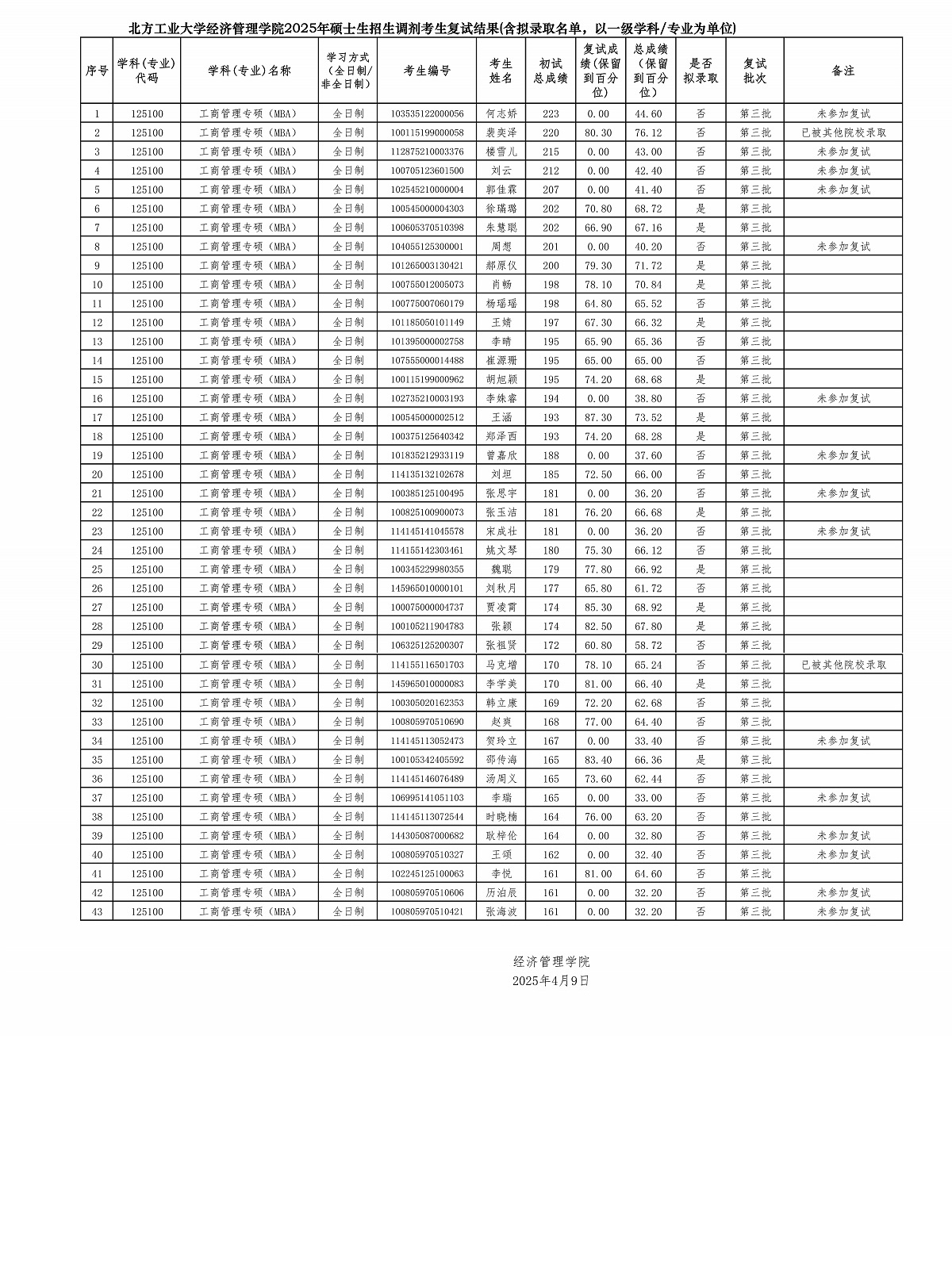 上一条: taptap点点官网2025年硕士生招生调剂考生复试结果——工商管理专硕(MBA)非全日制