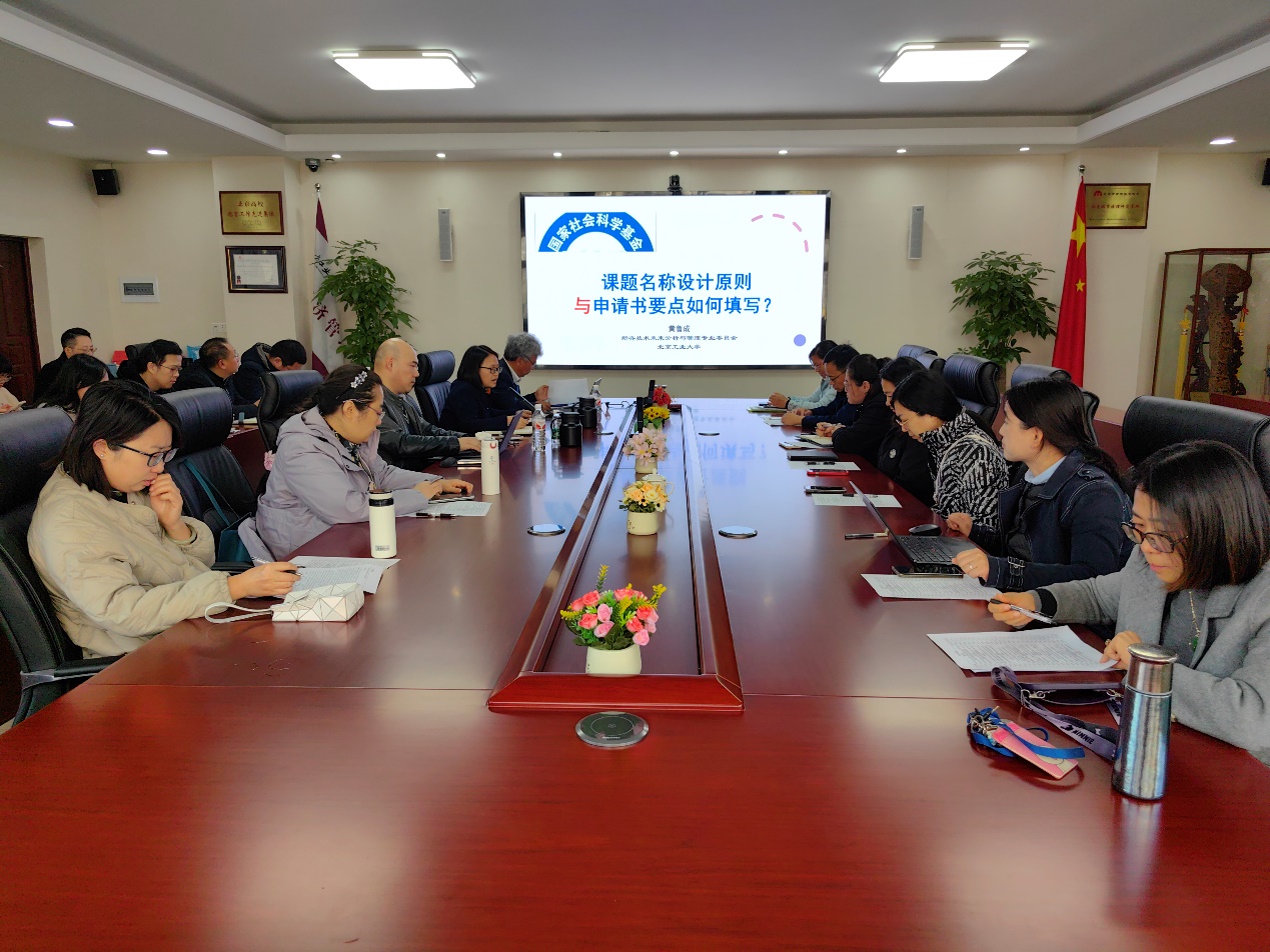随后,黄教授对老师们准备申报的课题名称进行了点评和一对一的交流,现场交流气氛活跃,老师们深切地感受到黄教授能够细心理解他们的所思所想,并从国家和社会需求的战略视角给予修改建议,提供研究新思路,令人茅塞顿开,受益匪浅。黄鲁成教授的分享和指导为我院教师社科基金项目申报提振了信心和勇气。