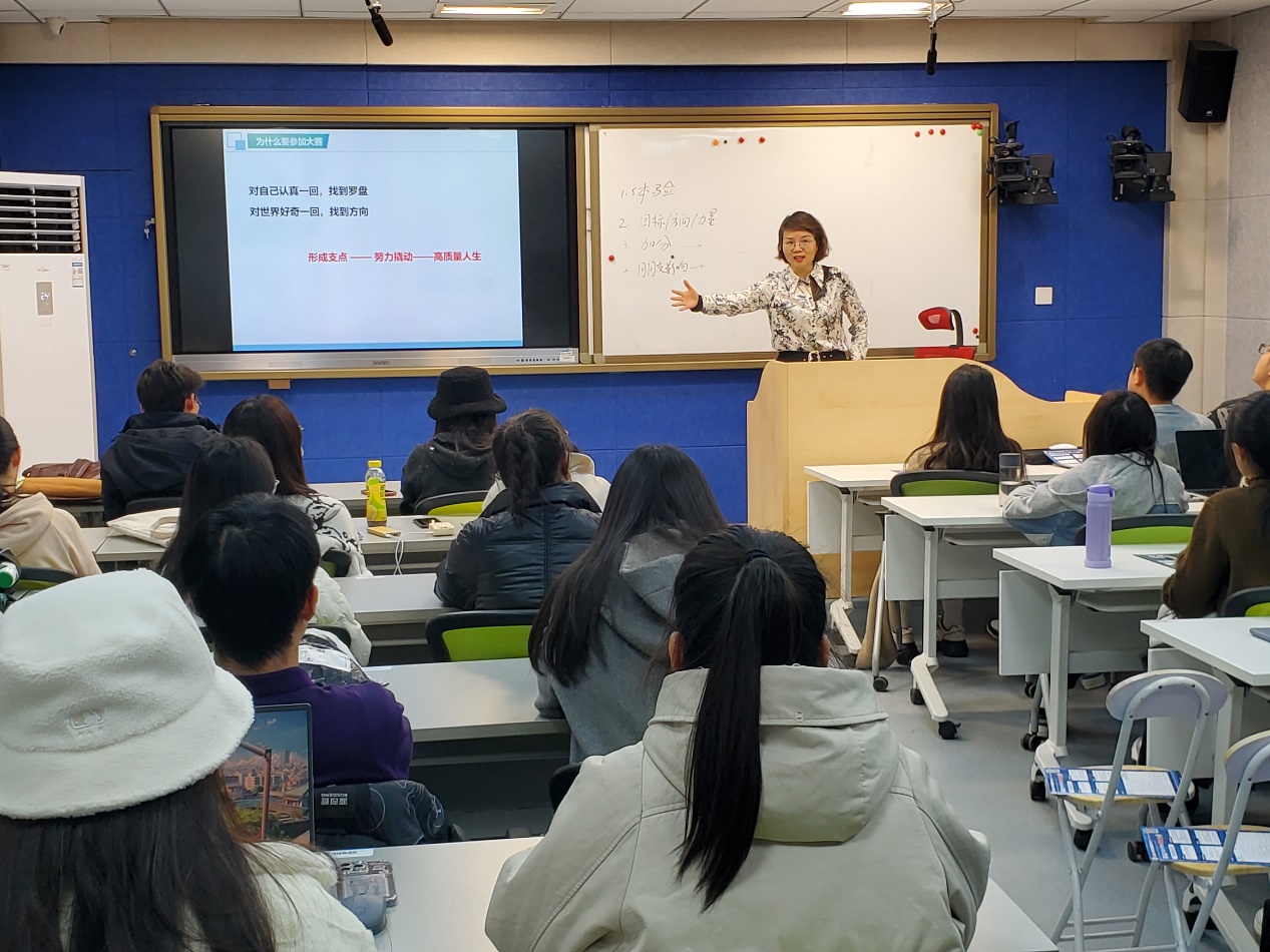 11月16日,taptap点点官网在励学楼135教室举办了“创新创业导航”系列讲座第九讲。本讲旨在为参加首届全国大学生职业规划大赛的学生提供专业指导。邀请北京高校辅导员工作室(“指南针”生涯规划工作室)主持人、北京高校就业创业金课《研究生职业发展与就业指导》负责人、大学生职业生涯规划大赛导师及评委、北京工业大学廖满媛老师作了题为“首届全国大学生职业规划大赛备赛要点解析”的报告。taptap点点官网实验中心主任牛天勇老师主持讲座,全校参赛的五十余名同学以及辅导员和部分指导教师参加了交流。