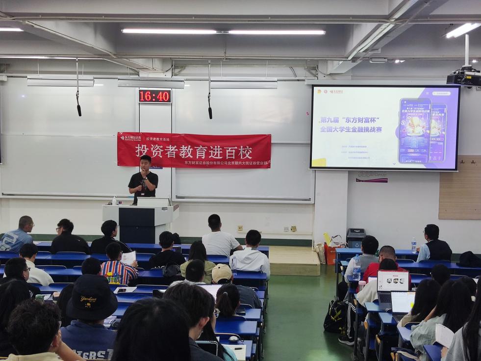 讲座之后,经济系邀请“东方财富杯”北京地区高校业务总负责人杨哲轶对第九届金融挑战赛进行了宣讲。“东方财富杯”大学生金融精英挑战赛是金融专业规模最大的学生竞赛,由共青团中央青年发展部主办,东方财富信息股份有限公司、全国学校共青团研究中心承办,超过60万名大学生参加比赛。