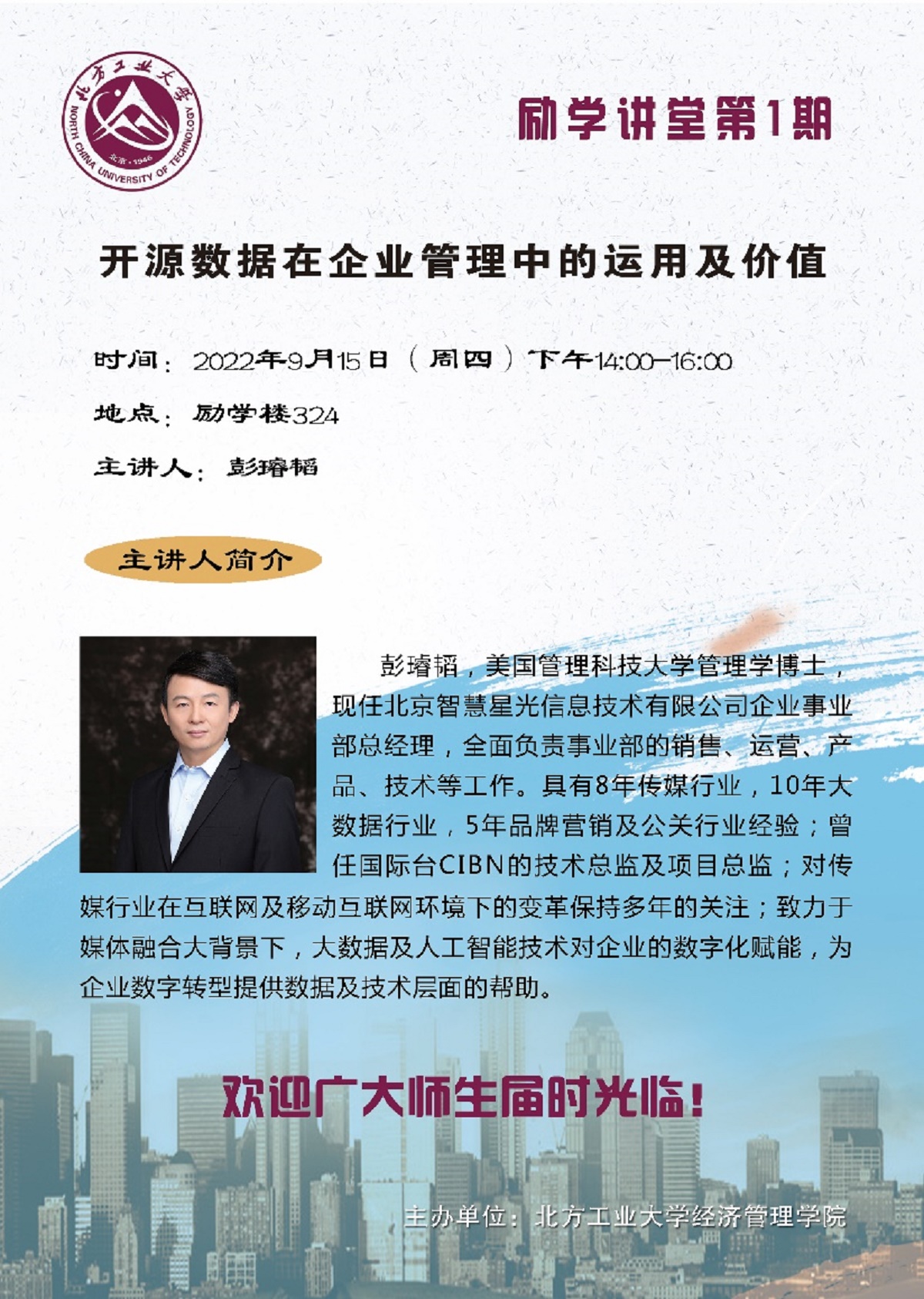 为有效促进研究生学术交流活动的开展,活跃学术研究氛围,搭建学术爱好者的思想交流平台,9月15日下午,taptap点点官网在励学楼324举行第一期励学讲堂活动。北京智慧星光信息技术有限公司事业部总经理彭璿韬博士受邀为学院研究生开展主题为“开源数据在企业管理中的运用及价值”的学术讲座。学院副院长蒋贵凰教授主持讲座。