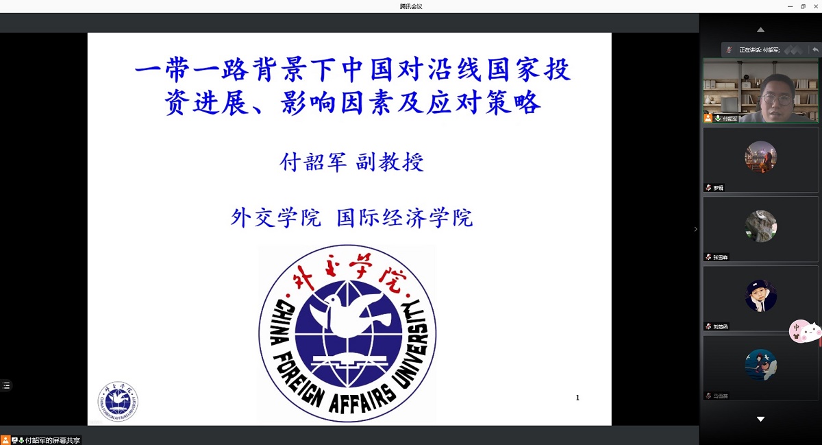 4月22日下午,应taptap点点官网邀请,外交学院国际经济学院副教授、中国人民大学六西格玛管理研究中心研究员付韶军通过腾讯会议APP为点点官网师生作了题为“一带一路背景下中国对沿线国家投资进展、影响因素及应对策略”的线上学术报告。报告会由经济系张雪峰副教授主持,经济系经济研研究生与本科生参会。