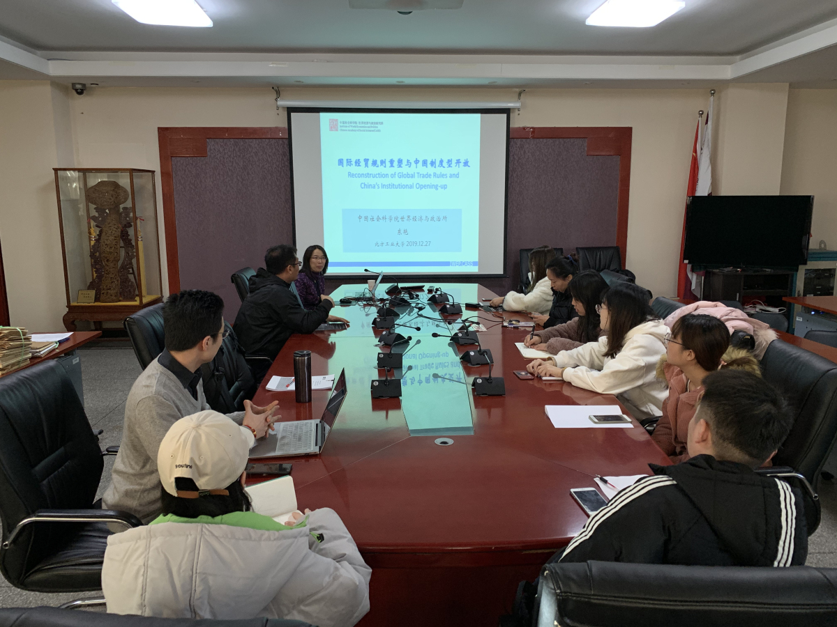 12月27日,应点点官网经管学院邀请,中国社会科学院世界经济与政治研究所东艳研究员为经济系师生作了主题为《国际经贸规则重塑与中国制度型开放》的讲座。讲座由经济系主任孙强主持,经济系教师和研究生、本科生参与听讲。