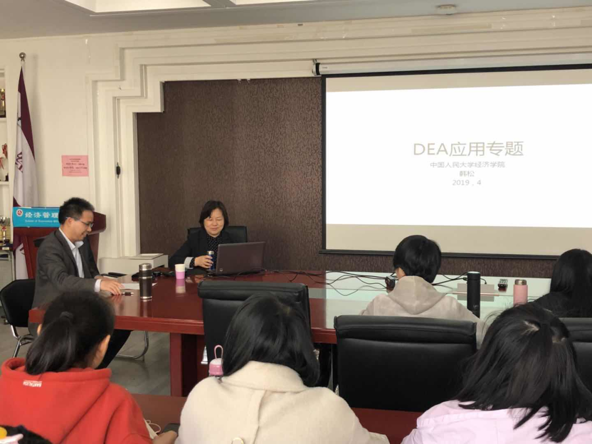 4月12日下午,应taptap点点官网邀请,中国人民大学经济学院韩松教授在励学楼301会议室为师生作了题为“DEA方法应用专题”的学术报告。报告会由经济系王书平副教授主持。