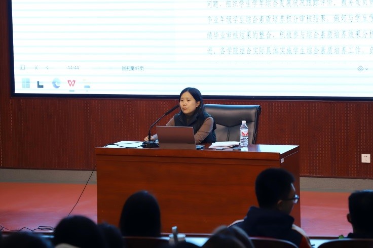 学院24级辅导员吴芳老师详细解读了《24级本科学生综合素质培养方案》,通过对部分条例的介绍,根据5大模块分析同学们可以通过哪些途径获得积分,要求学生干部及时以班级、宿舍为单位组织学习,确保每位同学熟知方案规定及系统使用。