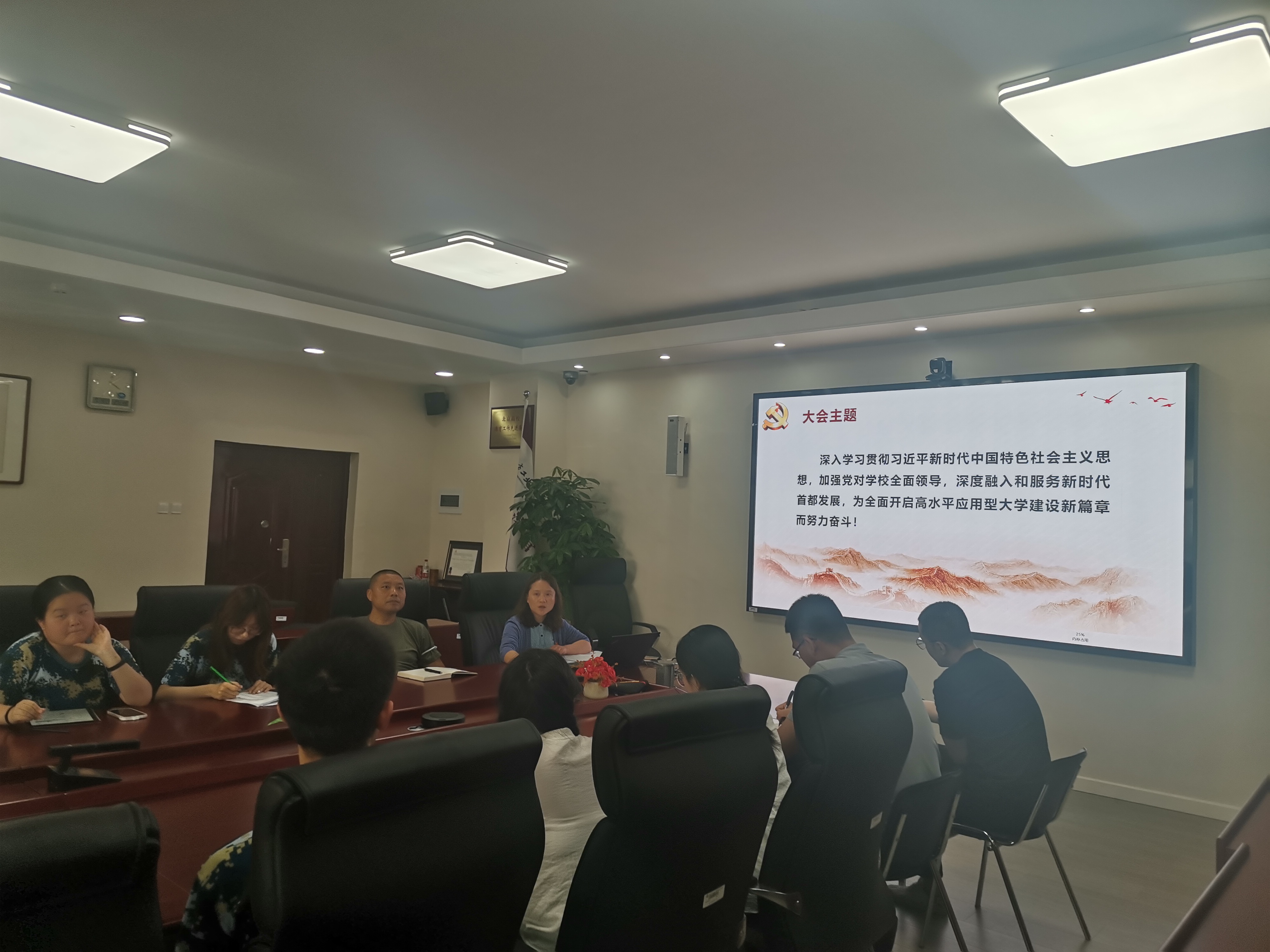 学校第九次党代会是在全党上下深入开展学习贯彻习近平新时代中国特色社会主义思想主题教育和学校实施“十四五”规划的关键时期召开的一次重要会议。学院党委副书记王帏带领与会师生认真学习学校第九次党代会报告原文,结合学院实际,深入细致向大家解读党代会报告中提出的发展建设思路。党代会报告中指出,学校在新时代高水平应用型大学的建设中,要全面落实“三步走”战略目标。要牢牢把握“六个坚持”,要全力实施“五大创新工程”。学校在全面开启高水平应用型大学建设新篇章中,要坚持和加强党对学校工作的全面领导、着力培养高素质应用型人才、持续深化一流学科和博士点建设、加快完善高水平科技创新体制机制、全力打造高素质教师队伍、积极推进高品质国际交流合作、持续提升服务社会能力和水平、凝聚事业高质量发展合力。