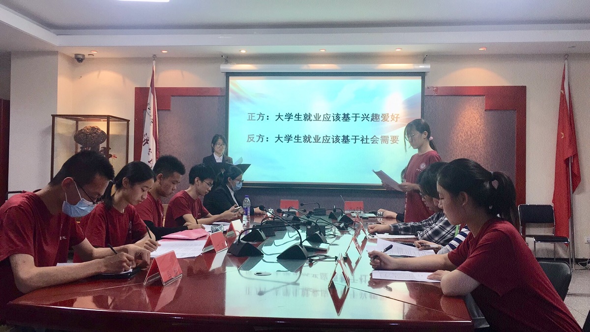 为引导新生了解大学生活,更早的思考人生方向,提高人生规划意识,经管学院于9月26日下午在励学楼201举行“思辨青春,规划未来”新生辩论赛。学院党委副书记王帏,团委书记兼20级辅导员吴芳,研究生辅导员王学成,21级辅导员张泽圣,学生代表担任评委。