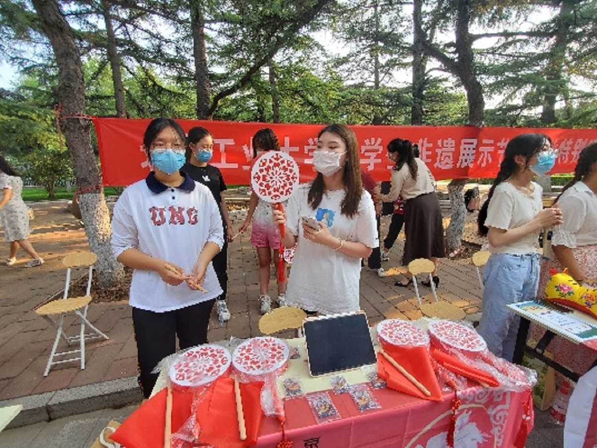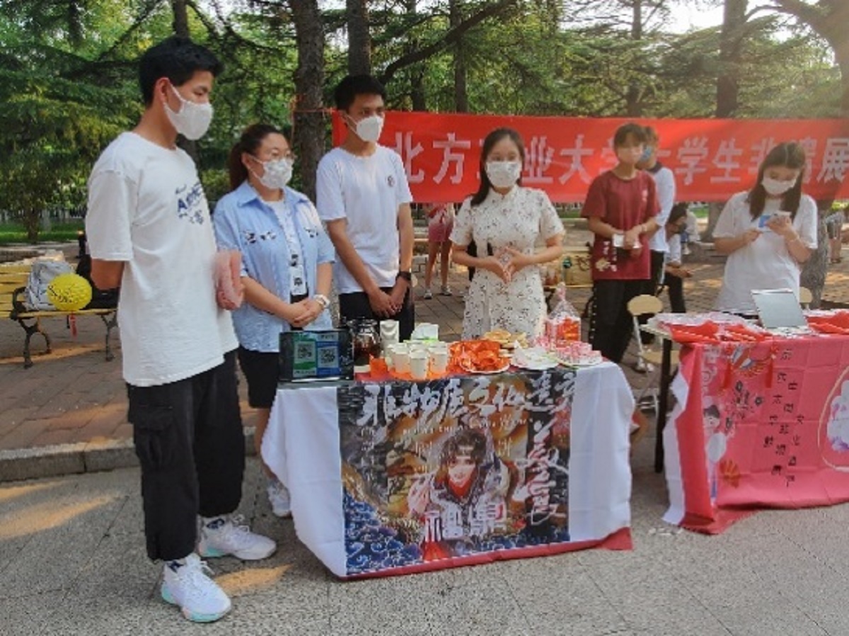 随后, “大学生非遗展示节”揭幕,来自五湖四海不同民族的同学们分别介绍家乡非遗。现场还展示了石景山区的非遗项目以及非遗文创产品,吸引了学校在校同学积极参与。