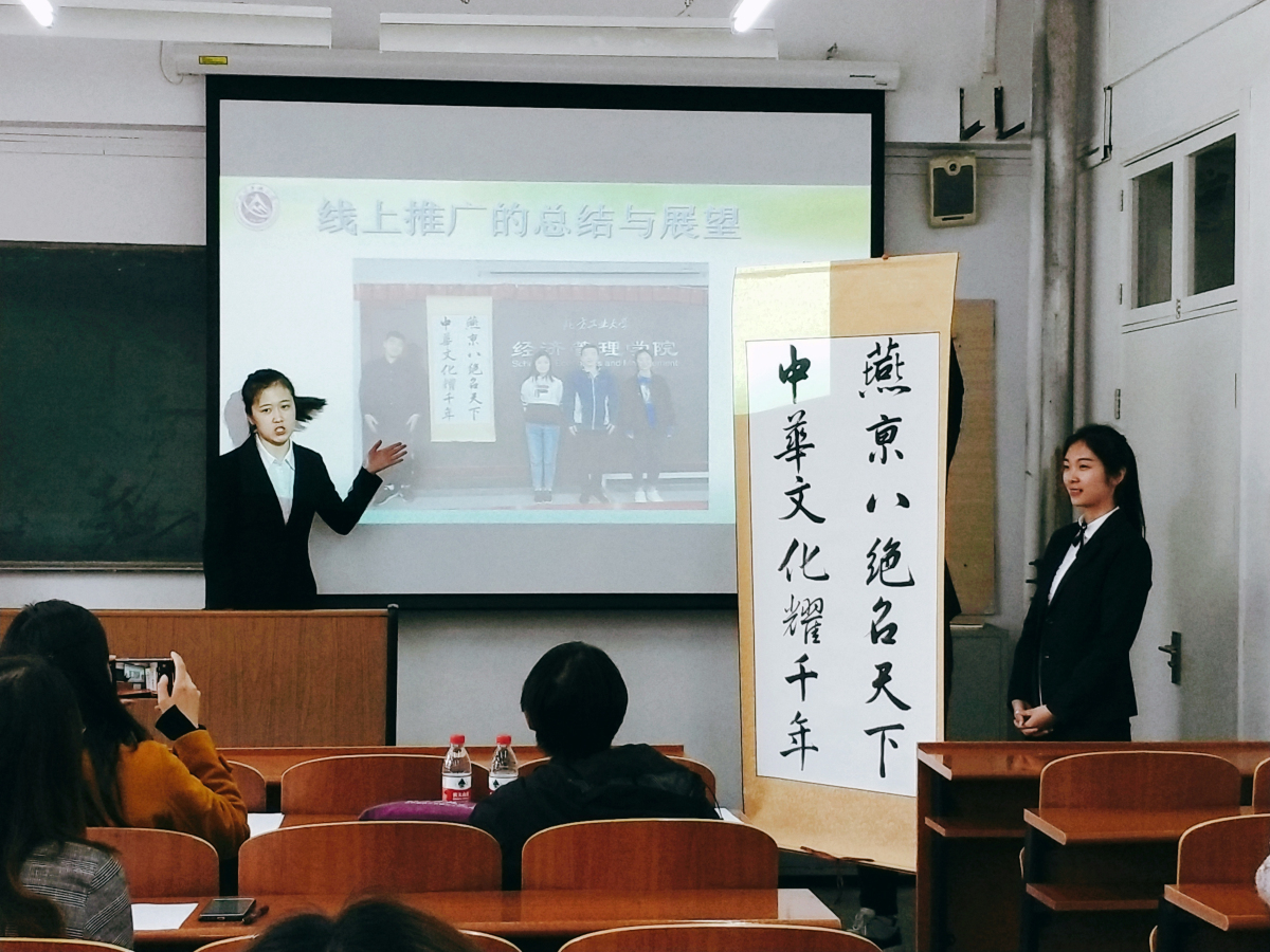 4月16日下午,由校团委主办、taptap点点官网承办的首届非物质文化遗产传承创意营销大赛决赛在励学楼218教室举行。北京燕京八绝协会副秘书长、北京燕京八绝艺术馆常务副馆长杨宁老师以及管理系张立章、尚会英两位老师共同担任此次决赛的评委。