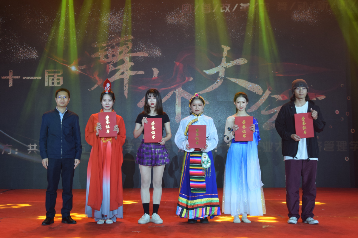 此次舞林大会分为四个篇章,分别为旧日芳华、星火燎原、百家争鸣和世纪风采,以改革开放以来舞蹈的“进化史”为时间主线,同学们用舞蹈展现了国家的进步,表达了国家富强、人民幸福的喜悦。选手们通过古典、民族、拉丁、爵士、街舞等不同舞种的融合,以“舞”抒情,精彩绝伦的技艺引发了全场阵阵掌声。最终,“焕”队和马莹子同学分获团体一等奖和个人一等奖。校党委副书记田红芳老师,学生工作部部长高国伟老师,校团委书记何有华老师为获奖选手颁奖。
