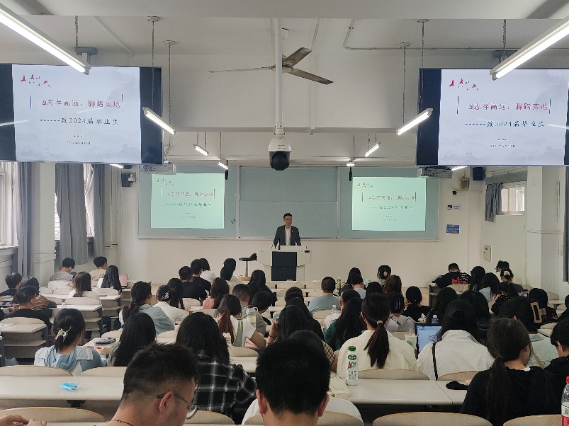 为深入学习贯彻习近平总书记关于党纪学习教育的重要讲话和重要指示精神,进一步加强毕业生党性教育,做好毕业生离校教育和思想政治工作,5月16日下午,经管学院在励学楼228教室开展2024届毕业生党员专题教育活动。学院党委书记谢朝阳给毕业生党员讲授了毕业党课,党委副书记王帏领学了《中国共产党纪律处分条例》,170余名毕业生党员参加活动。