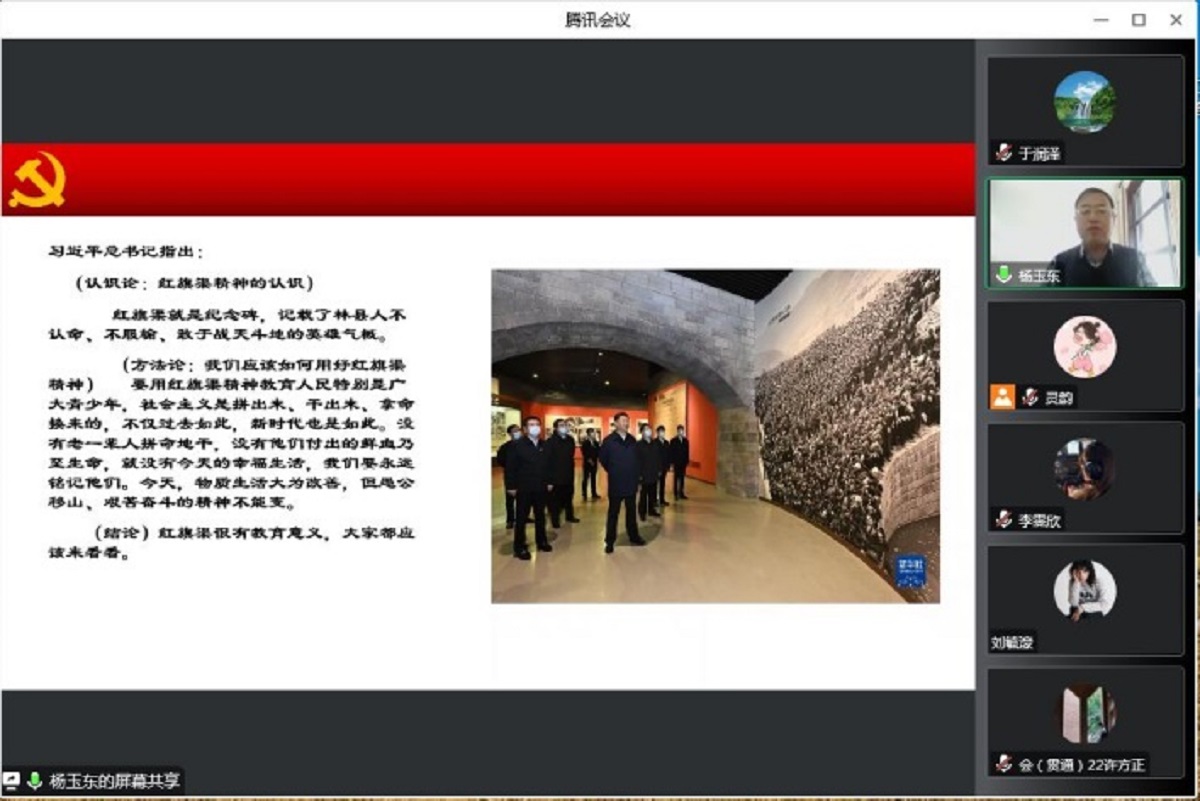 为深入学习贯彻习近平新时代中国特色社会主义思想和党的二十大精神,深入学习红旗渠精神,强化学院党员理论水平,12月1日,taptap点点官网邀请河南省安阳市林州市委宣传部副部长杨玉东同志讲授红旗渠精神专题党课。学院全体师生党员通过腾讯会议线上进行党课学习,会议由学院党委副书记王帏主持。