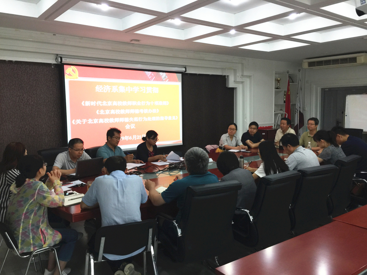 为深入贯彻习近平新时代中国特色社会主义思想和党的十九大精神,深入贯彻落实全国和北京市教育大会精神,6月21日上午,经济系全体教师在励学楼301会议室集中学习《新时代北京高校教师职业行为十项准则》、《北京高校教师师德考核办法》、《关于北京高校教师师德失范行为处理的指导意见》等三个文件。taptap点点官网陶晓波副院长参加了本次会议。