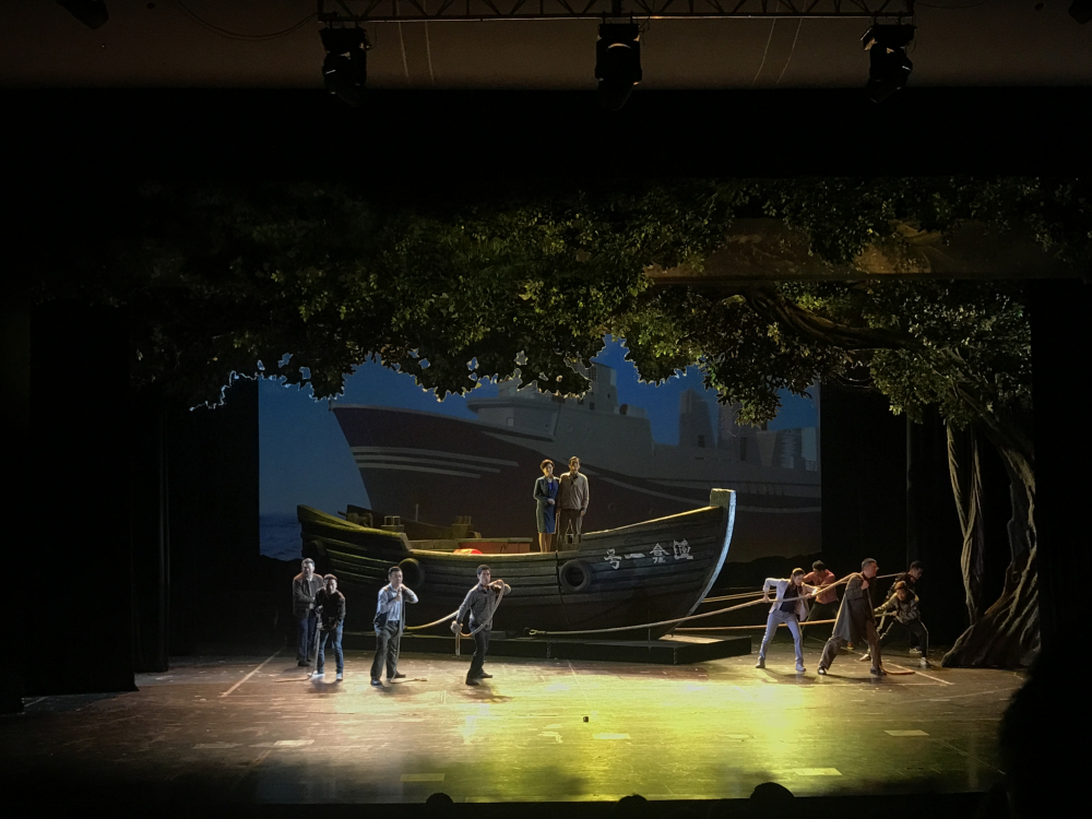 话剧《船歌》是2018年国家话剧院献礼改革开放40周年的原创之作。故事发生在改革开放初期,渔民出身的船长梁海涛和外来打工妹林秀英怀揣着对美好未来的向往,凭借着年轻人独有的清纯与热血,就此展开一段不畏艰难、顽强拼搏、勇敢追求幸福的故事,经济特区飞速发展的大幕也在这样一群满怀奋斗精神的年轻人的努力下慢慢拉开。