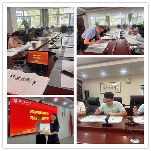 活动现场,墨香四溢、气氛热烈。教师们或凝神构思,或挥毫泼墨,将对教育事业的热爱、对学院和学生们的期许融入笔端。楷书工整端庄,似教师教书育人的严谨态度;行书流畅洒脱,如师者春风化雨的育人智慧;隶书古朴厚重,喻示教育事业的坚实根基。