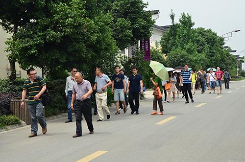 下午2点半,学院教工党员一行抵达唐昌镇战旗村。战旗村党总支书记高德敏引导大家参观了村庄并对村民的生活状况做了介绍,大家被战旗村花园式的住宿环境和战旗村村民的生活水平所震撼。