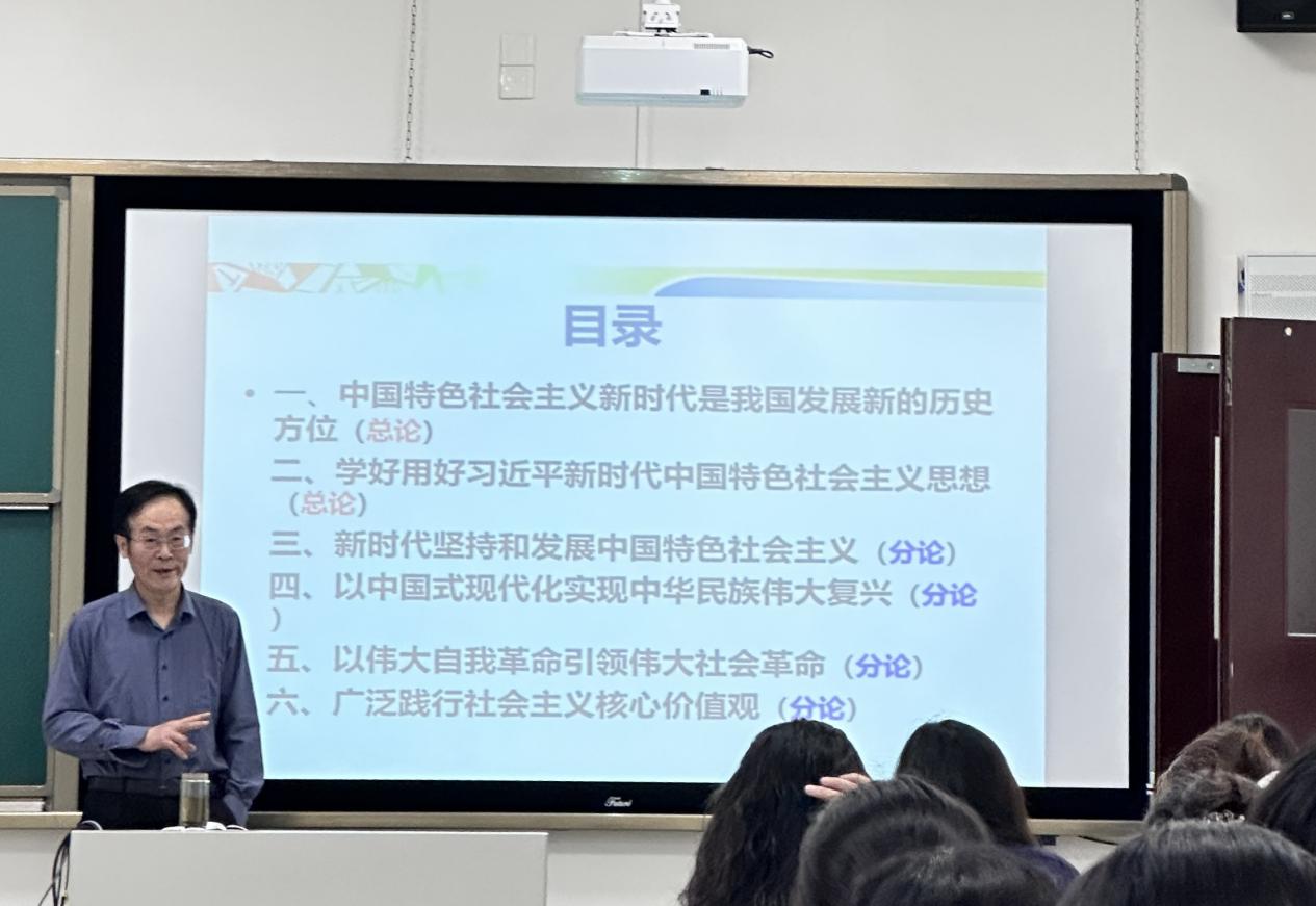 课堂上,刘院长强调了理论创新的重要性,中国特色社会主义理论体系是指导我们前进的强大思想武器。通过学习习近平新时代中国特色社会主义思想,可以更好地帮助同学们理解中国特色社会主义的内涵和要求,从而在实践中不断推进理论创新,使中国特色社会主义理论体系更加丰富、更加完善。在谈及中国式现代化的独特性和时代意义时,他指出,中国式现代化不仅追求经济的快速发展,更注重社会的全面进步和人的全面发展。通过实现中国式现代化,我们可以更好地满足人民日益增长的美好生活需要,实现社会公平正义,促进人的全面发展,从而为实现中华民族伟大复兴奠定坚实基础。