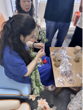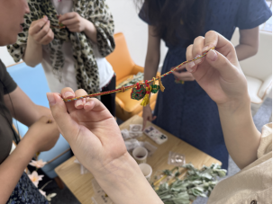 编五彩绳和扎艾草菖蒲将活动推向高潮。教职工们围坐在一起,互相学习搭配技巧,用五彩丝线串起象征“辟邪纳福”的吉祥图案。同样在扎艾草菖蒲的过程中,大家纷纷回忆起儿时与家人一起挂艾草的温馨场景,现场充满了欢声笑语。通过沉浸式体验,教职工们在动手实践中深入交流,共话端午习俗的深厚文化渊源,切身感受传统节日的独特魅力。教职工们纷纷表示,这样的活动不仅丰富了业余生活,更让大家在轻松愉悦的氛围中增进了彼此的情谊,提升了学院凝聚力。