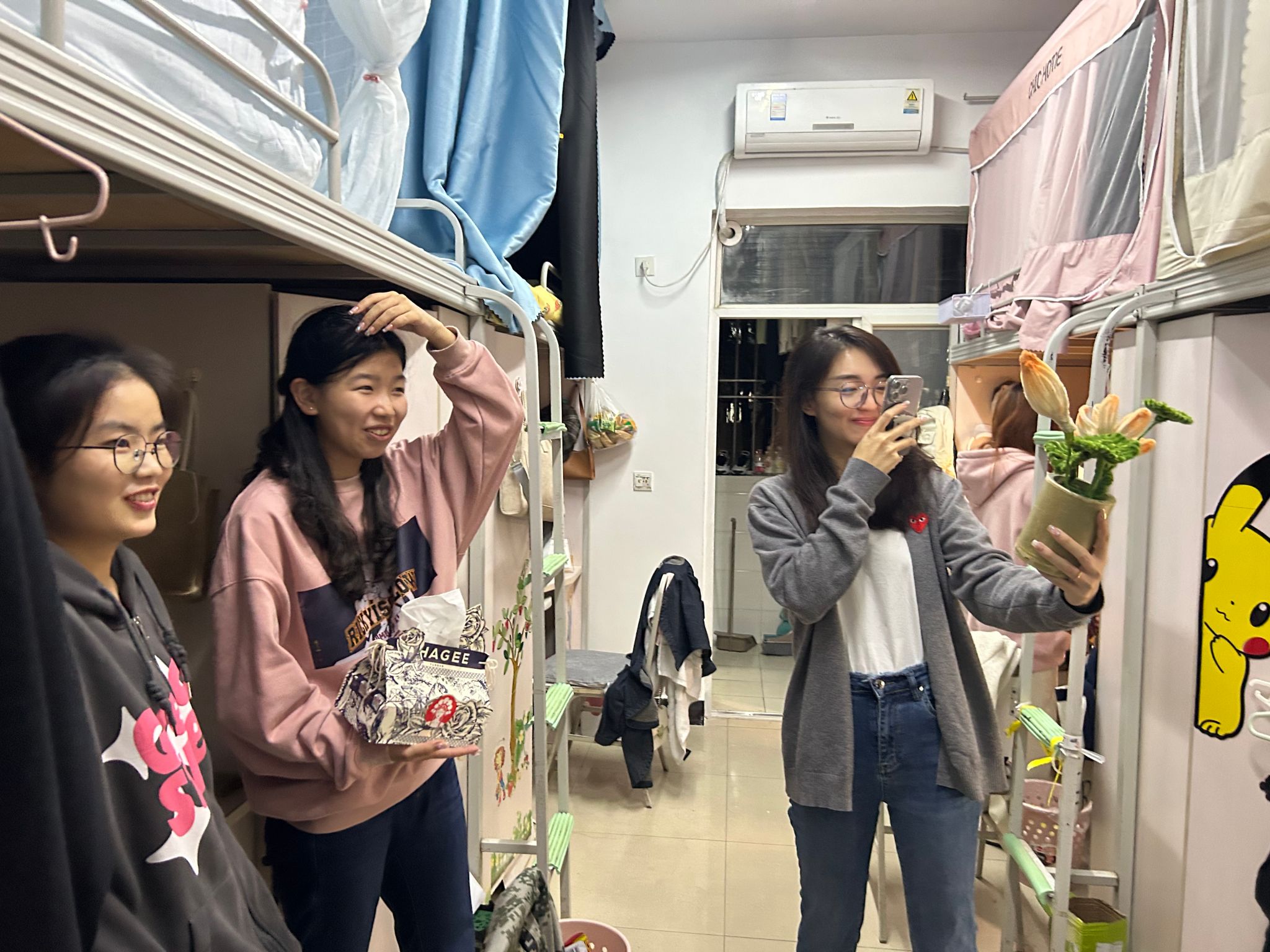 刘晗悦老师走访了2023级本科生宿舍,认真检查了宿舍的安全情况,并关心了同学们的身体健康,提醒学生注意添衣保暖,预防流感。周桎宏老师与罗乔美老师分别前往2021级本科生以及2022级本科生宿舍。两位老师询问了同学们的学习生活情况,提醒各位同学注意宿舍安全,共同营造良好的生活、学习环境。