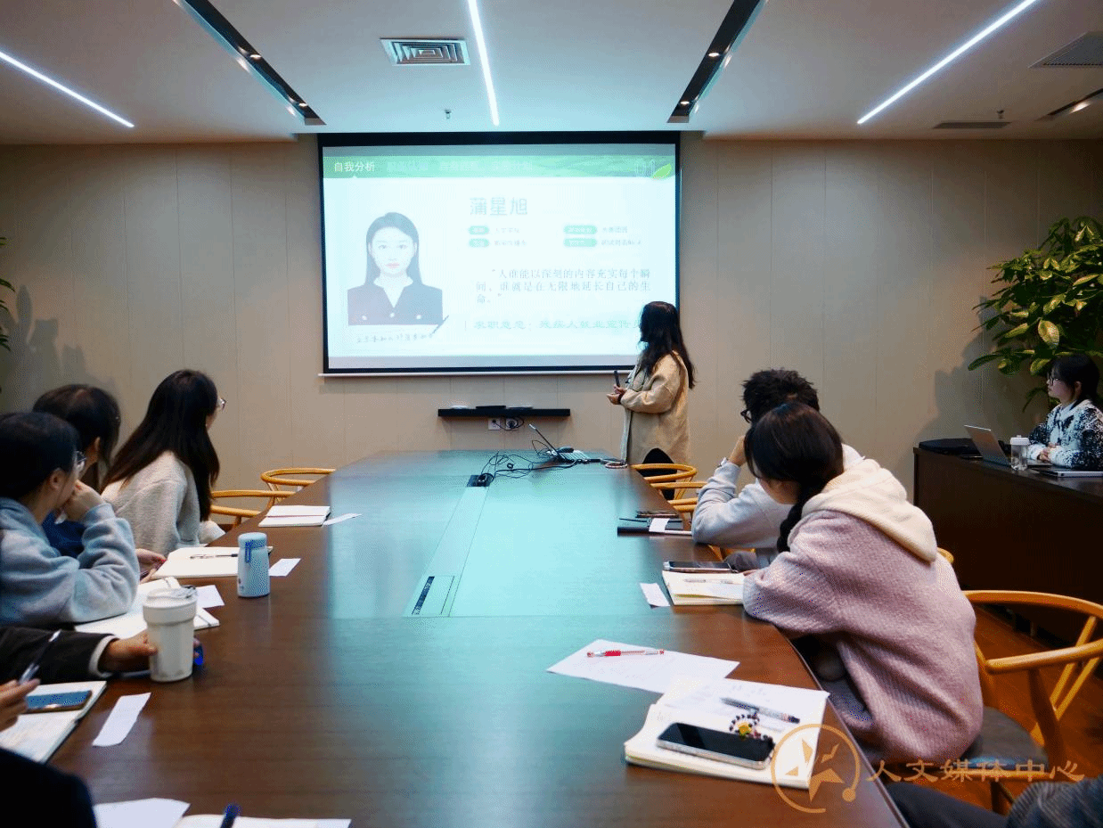 本次比赛分共为两个部分,首先为参赛选手做分享。第一位登场的是成长赛道的2023级本科汉语言专业王景玄同学,她从“自知为明”,“立标作向”,“笃行以远”,“调衡以恒”四个方向出发深入剖析了目标职业所需的技能和素养,并制定了详细的学习计划。第二位选手为就业赛道的2022级本科新闻传播专业沙际月同学,她通过展示自身丰富的实习经历以及较强的工作能力,为在场评委分享了自己的职业追求。同为就业赛道的2021级本科新闻传播专业陈培培同学通过精彩的 PPT 演示和富有激情的演讲,阐述了自己的个人优势以及职业目标。最后,研究生新闻传播专业蒲星旭同学作为尾场选手从容不迫,怀揣着对未来职业的憧憬和规划,在就业赛道上展现出独特的风采。