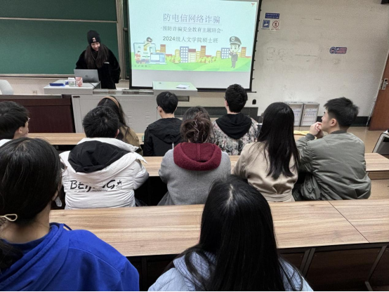 为提升同学们的反诈意识,增强同学们的自我保护能力,有效遏制校园电信网络诈骗案件的发生, 2024年11月27日下午两点,澳门永利yl6776研2024级中文班和传哲班共同组织开展了以“反诈新规铭于心,电诈陷阱止于行”为主题的班会,此次班会旨在宣传防范电信网络诈骗知识,学习即将正式实行的《电信网络诈骗及其关联违法犯罪联合惩戒办法》。班会由中文班团支书主持,班级同学积极参与。