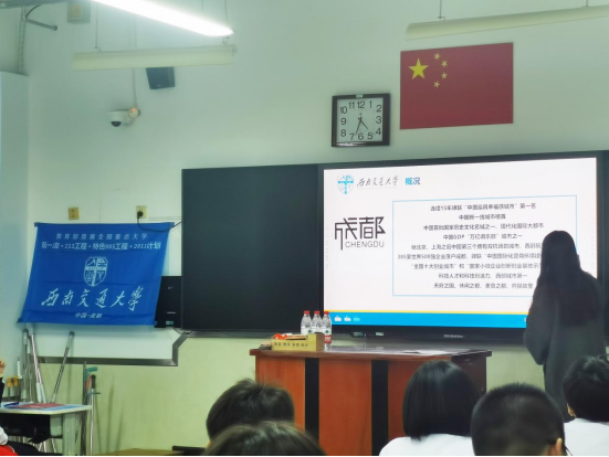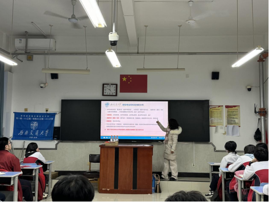 开幕式完毕,付老师和朱老师前往高三22班进行宣讲。朱老师首先以生动风趣的语言介绍了我校的百年办学历史、深厚文化底蕴和卓越的学术成就,着重阐述了我校在学科建设、师资力量、人才培养模式、科研成果以及校园文化等方面的优势与特色。通过一个个鲜活的学科案例、一项项前沿的学术研究、一批批杰出的校友事迹,全方位展示了我校丰富多彩的学术生态和充满活力的学习氛围,让同学们对各学院的专业设置和发展前景有了清晰直观的认识。付老师详细介绍了我校今年的招生政策、招生计划以及录取规则,并鼓励同学们积极报考,加入西南交通大学这个温暖而充满活力的大家庭,在追求知识与梦想的道路上携手共进,书写属于自己的精彩篇章。