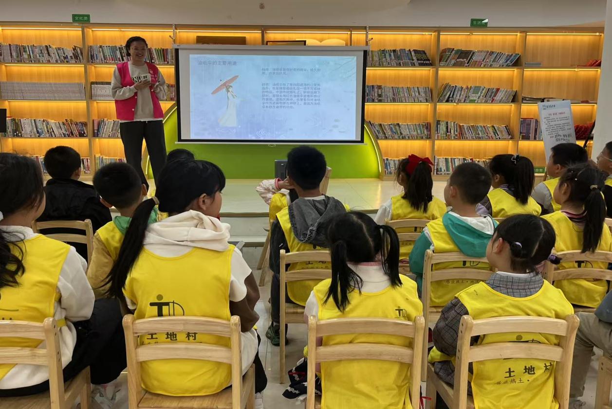 活动伊始,志愿者们把五彩斑斓的油纸伞材料摆放整齐,并为孩子们详细讲解油纸伞的历史、文化内涵和制作工艺。孩子们听得津津有味,眼中满是好奇与期待。