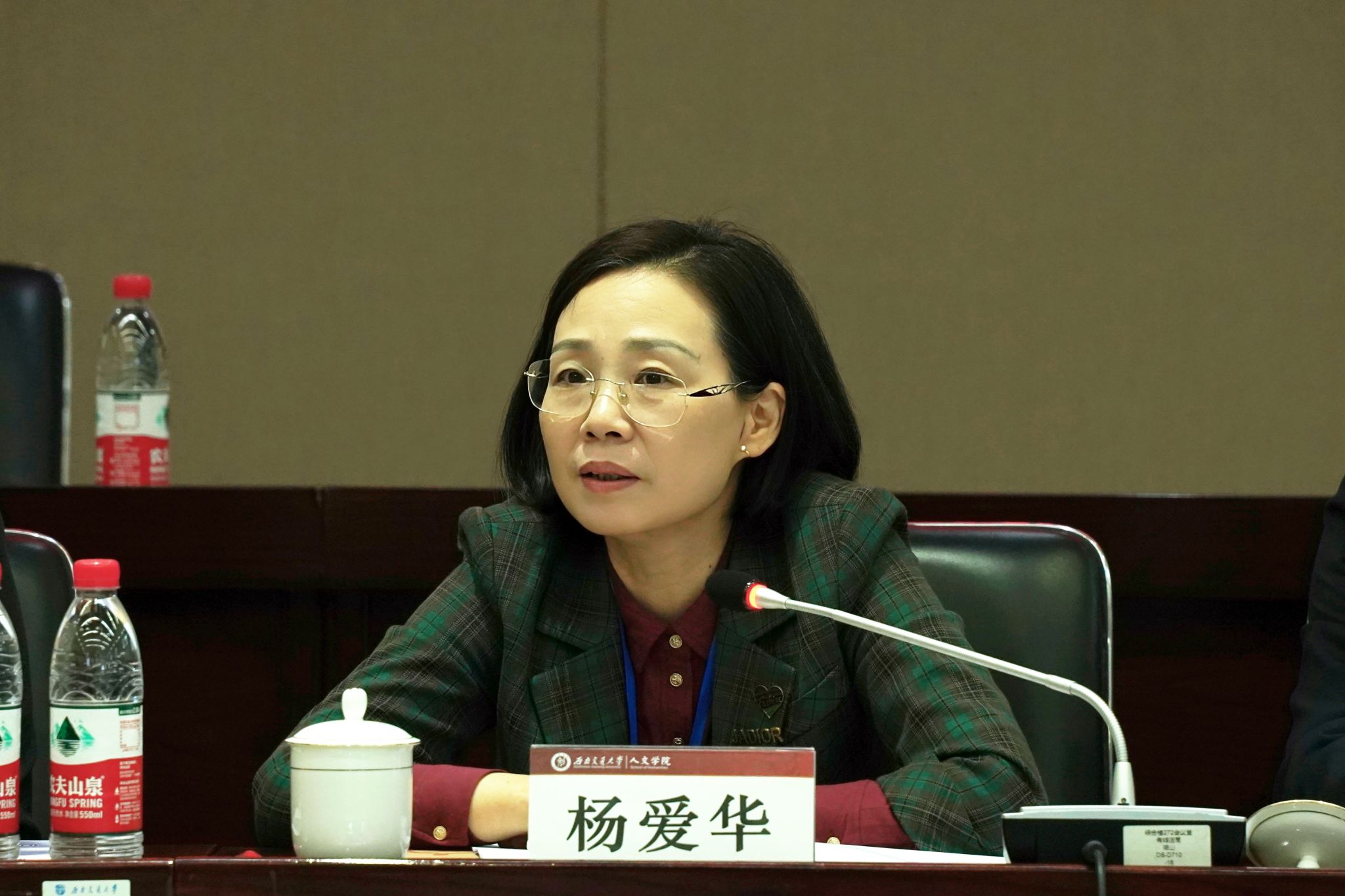 西南交通大学党委副书记杨爱华介绍了西南交大的悠久历史,并向远道而来的嘉宾表示最热烈的欢迎,同时也向长期支持学校和学院发展的同仁们、朋友们致以最诚挚的感谢。她讲到,西南交大以理工科见长,特别是在轨道交通领域更是位居世界前列,但与此同时,近些年来西南交大也重视人文学科的发展,尤其注重整合凝炼新文科方向,积极探索以“交通+”“信息+”为特色的前沿交叉学科发展路径。杨爱华表示,各位专家、学者相聚在西南交通大学,以“博古通今”为主题,探讨文化传承与发展这一时代课题,与学校“交通”特色相得益彰,颇有韵味。“天地交而万物通”,不仅仅体现了物质的迁移、时空的转变,更是精神的传承、文化的交流、文脉的赓续,是更广、更深,美美与共的“交通”。从视野到精神,从文化到风土,从情感到思维,唯有融会贯通,方能纵横捭阖。