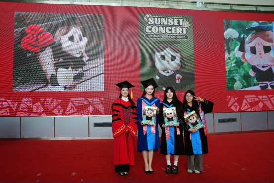 罗书记还精心准备了彩蛋环节——现场随机抽取三位同学赠送CRY BABY毛绒公仔,希望毕业生们永远带着这份乐观、韧劲和坚强,穿越迷雾见朝阳,跨越山海揽明月,一路披荆斩棘、昂扬向上。