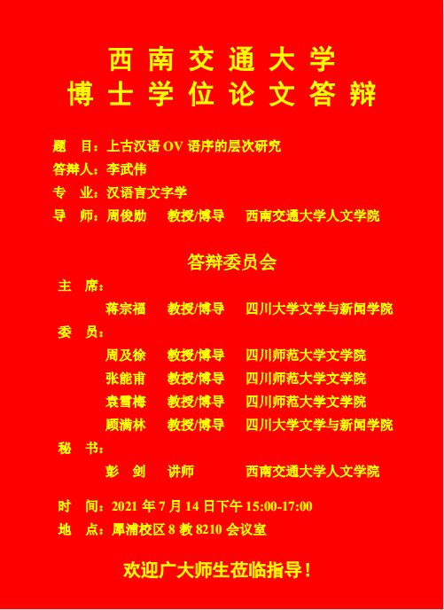 【博士答辩】澳门永利yl6776博士研究生学位论文答辩海报