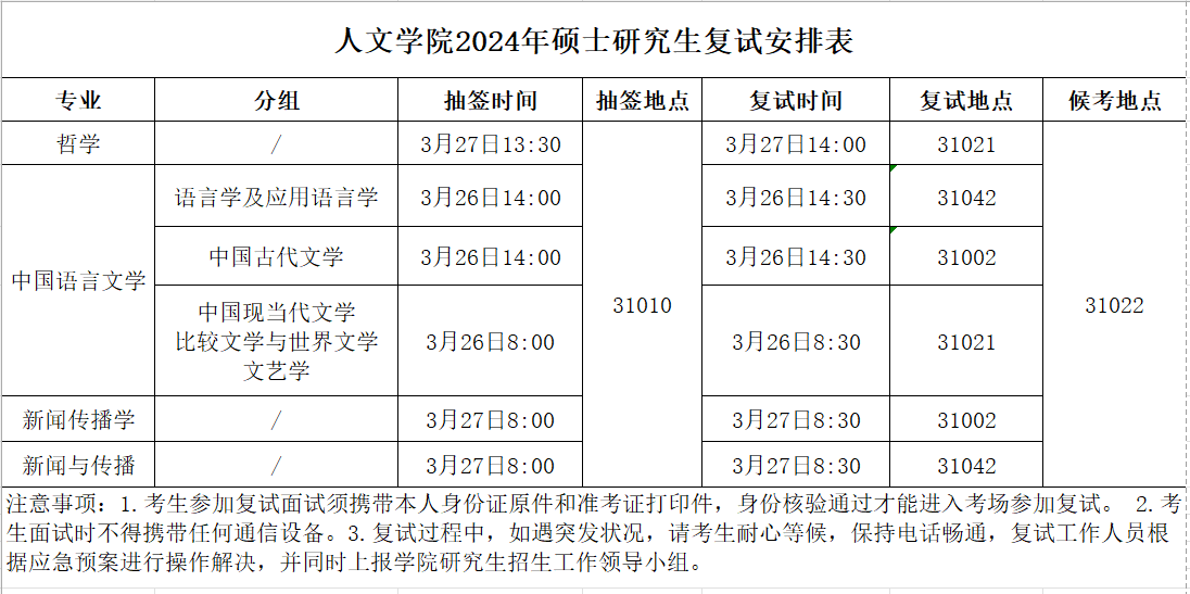 【硕士研究生招生】澳门永利yl67762024年硕士研究生复试安排表