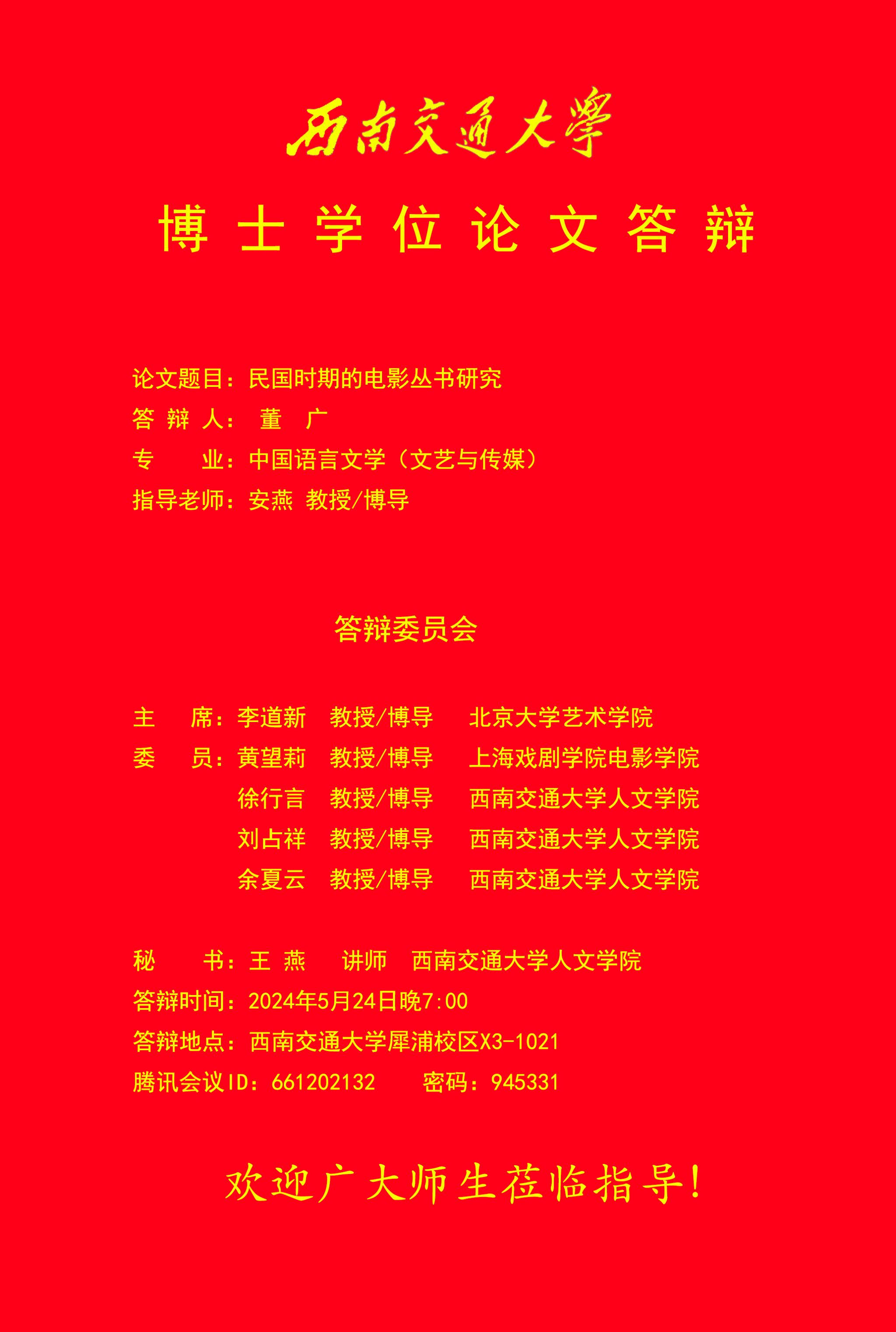 【博士答辩】澳门永利yl6776博士研究生学位论文答辩海报
