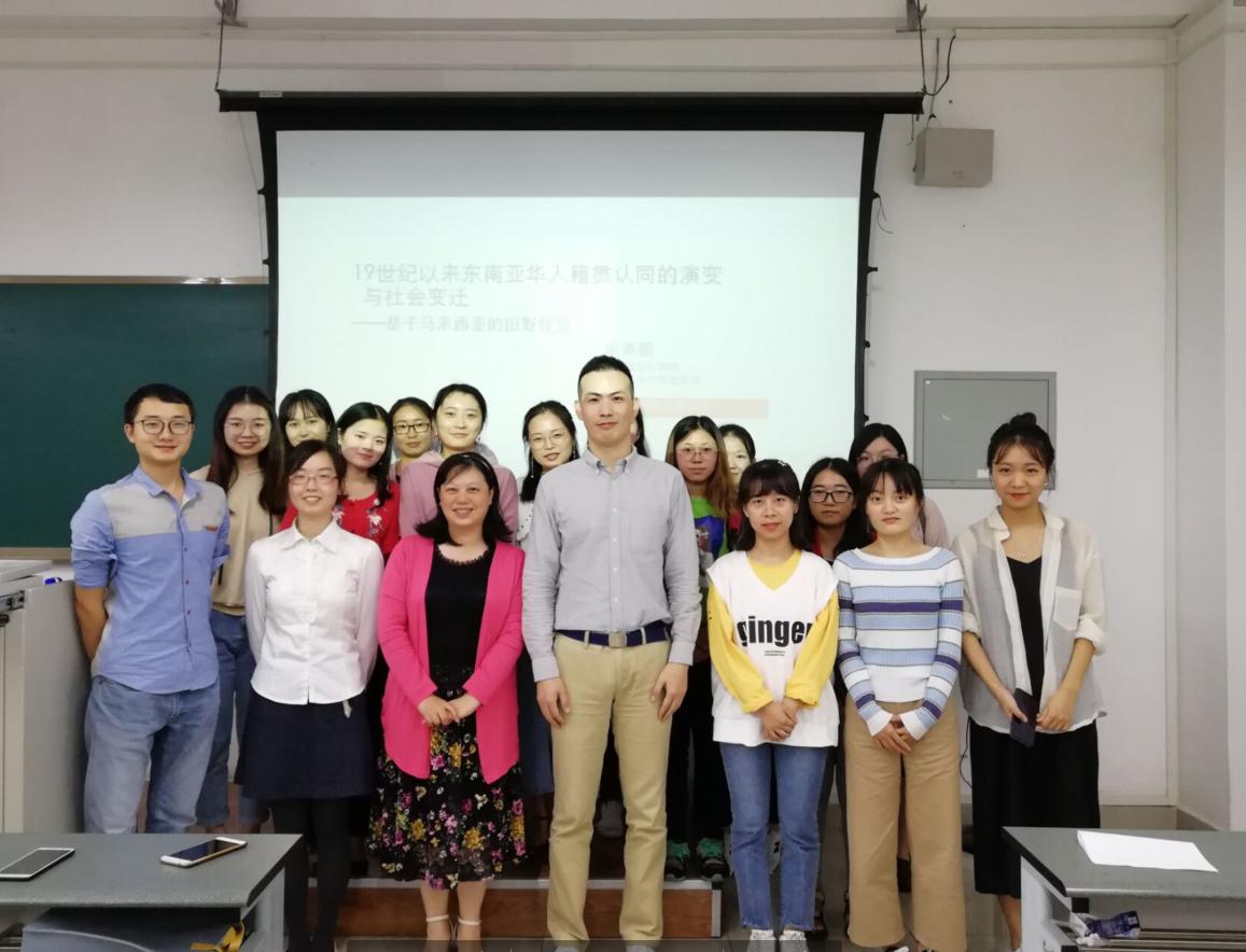 中国社会科学出版社宋燕鹏编审赴我校举行“19世纪以来东南亚华人籍贯认同的演变与社会变迁”讲座2018年9月26日15点,受我校越南研究中心和澳门永利yl6776的邀请,中国社会科学院中国社会科学出版社编审宋燕鹏老师莅临我校,于犀浦校区X9304教室举行了名为“19世纪以来东南亚华人籍贯认同的演变与社会变迁”的学术讲座。讲座由越南研究中心负责人刘玉珺老师主持。讲座开始前,刘老师简单介绍了宋燕鹏老师近年来的学术研究成果,宋老师是中国社会科学院中国社会科学出版社编审、历史与考古出版中心副主任, 2012年11月-2014年1月任马...