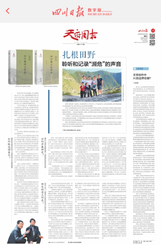 《四川日报》专访中文系“西南民族地区铁路沿线语言文化研究团队”成员黄阳老师中国是一个语言资源大国,在现代化的进程中,面临汉语方言和少数民族语言趋于濒危、传统语言文化快速流失的问题。永利官网中文系黄阳老师多年致力于西南民族地区铁路沿线语言文化研究,其著作《四川雅江扎坝语》受国家出版基金资助,近期在《商务印书馆》出版。近日,《四川日报》《川观新闻》...